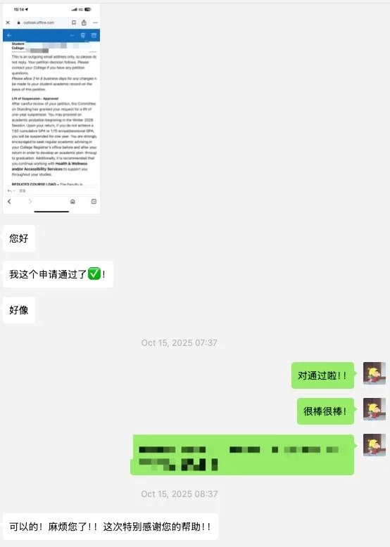 这位同学在9月中收到了停学一年的通知,两周内火速联系我寻求帮助。