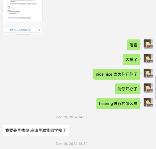 hearing结束的第二天,结果来了:appeal成功。她将在2025年1月正式返校。