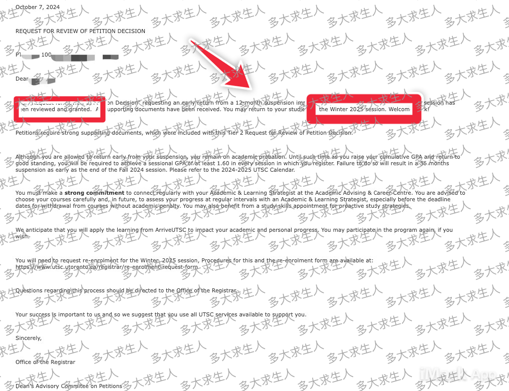 成功案例4 不到1月审批通过,25 Winter返校