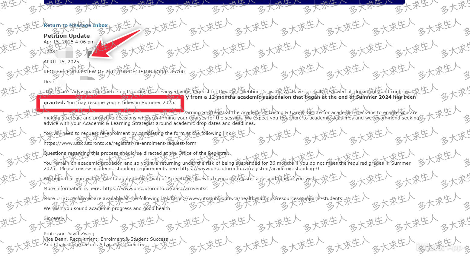 很多同学申诉成功回到学校后,因为没有在停学期间养成有效的学习习惯,返校后第一学期成绩依然不理想,陷入第二次停学(三年)的风险中。这是我们必须极力避免的。我也会给每个同学提供后续支持,为大家的学业成功保驾护航。