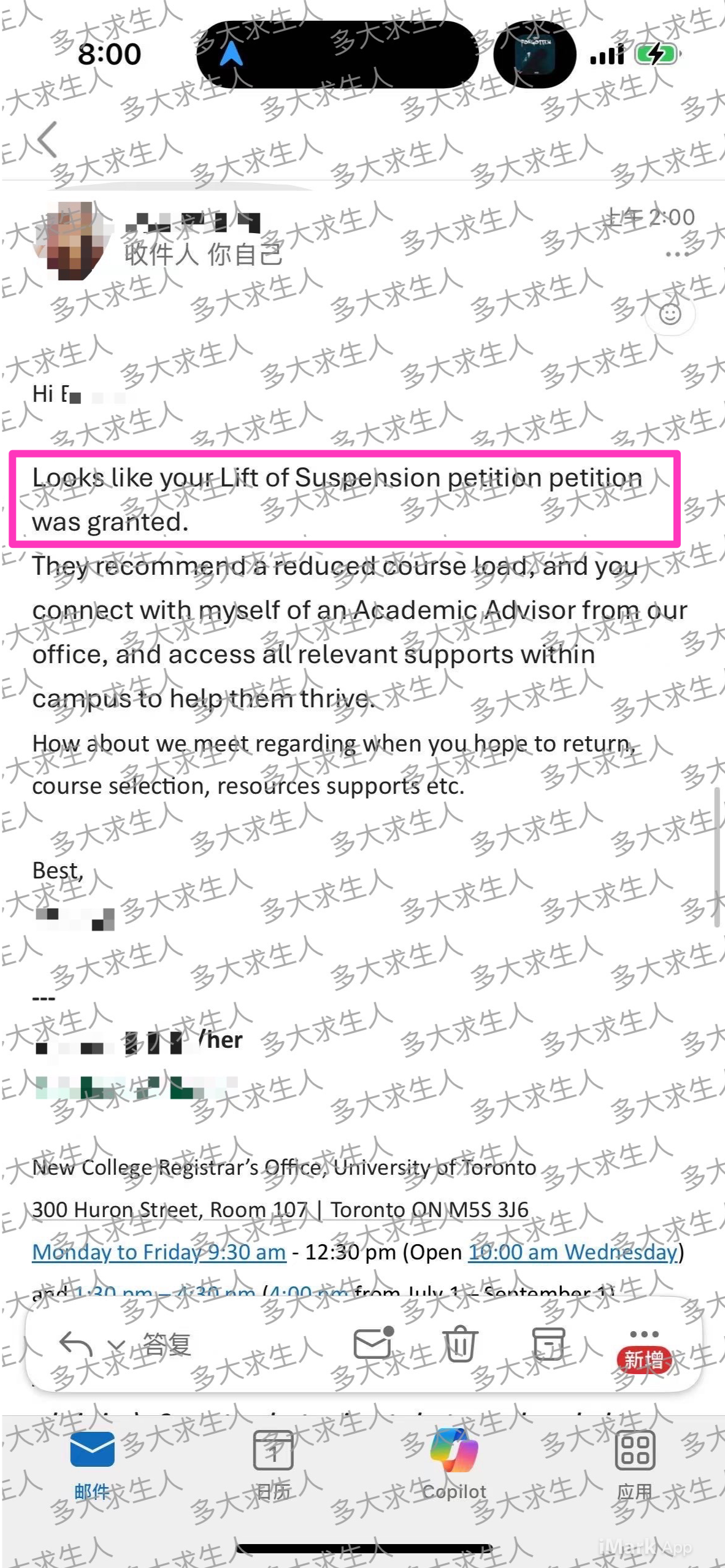 我们比其他停学的同学提早三周准备,材料准备得更细、逻辑更清晰,递交时间也早了许多。9月初我们就提交了申请。