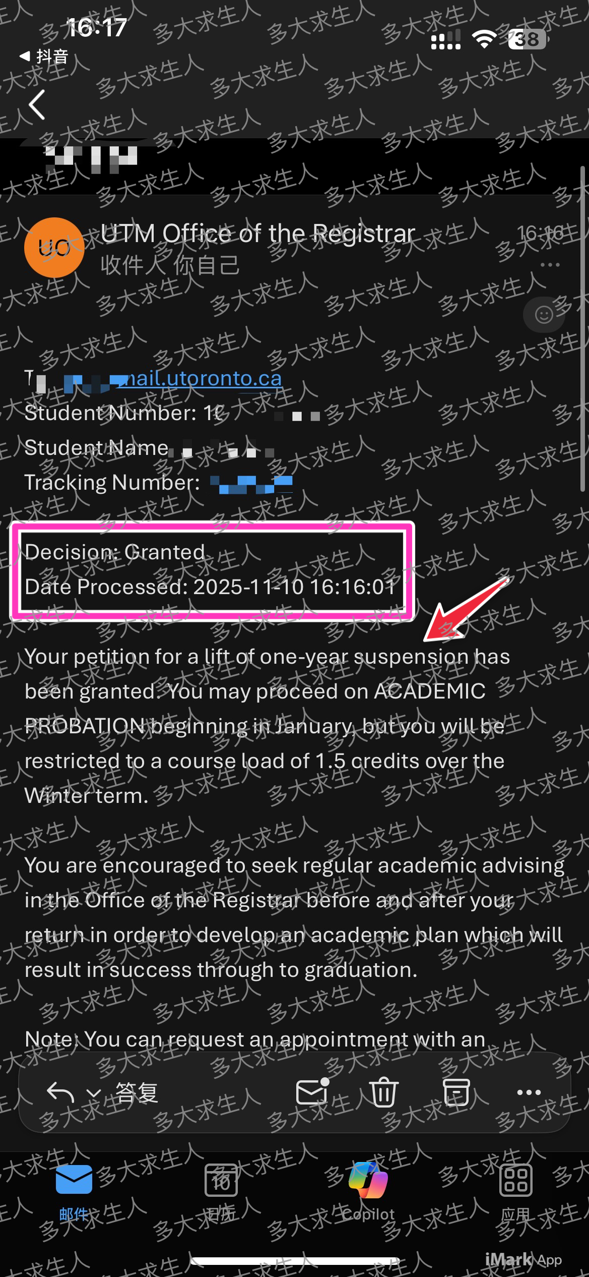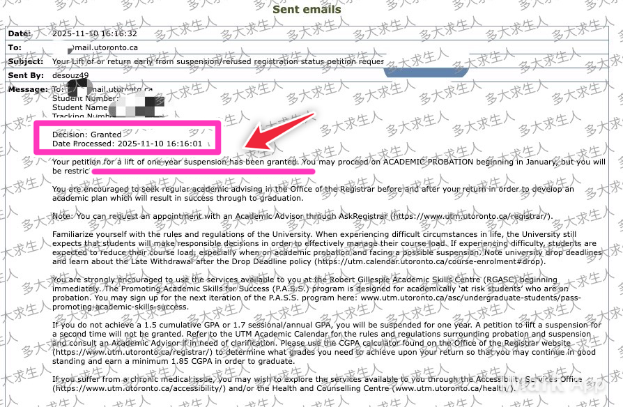 我们详细聊了他的情况,他看了我之前处理过的成功案例,也知道我也曾被多大停学过两次(欢迎看看我的小红书置顶 在多大从停学到全A系列),于是毫不犹豫地决定交给我全权处理。
