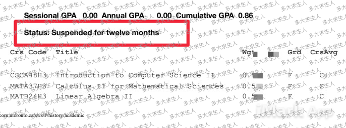 这位同学是在2025年5月因GPA原因被多伦多大学停学,6月时找到我,希望协助申诉复学。